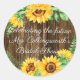 Hochzeit oder Brautparty Sonnenblumen Kranz auf Barn Wood Gast Gast Sticker. Dieser schöne, individuell gestaltete Aufkleber oder Umschlag Aufkleber ist mit Ihrem verheirateten Namen in hübscher Schrift personalisiert. Vintager Sonnenblumenkranz in Aquarellfarben auf einem Stallholzbild. "Feiern Sie die zukünftige Frau" mit Ihrem verheirateten Namen. Ideal für einen rustikalen Hochzeitsgast. Um die passenden Produkte anzuzeigen, besuchen Sie bitte "The Hungarican Princess - A Boutique™" ( zazzle.com/hungaricanprincess*). Schauen Sie in der Hochzeitskategorie oder in der Sonnenblumentheorie. Glückwünsche.