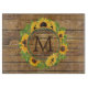 Dieses personalisierte Schnittbrett hat ein braunes Monogramm im Zentrum eines hellen und farbenfrohen Sonnenblumenkreises. Die Farben der Sonnenblumen sind überwiegend gelbes Gold, Grün und reich orangefarbenes Braun. Der Rahmen und das Monogramm werden auf einem goldenen Imitat Holzpaneelhintergrund platziert, der fast wie ein Glühen scheint. Einzigartig, attraktiv und personalisiert für Sie! *Design Guthaben an LeCoq Design für das verwendete Blumenbild.