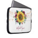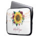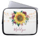 Dieser Computerärmel zeichnet sich durch ein modernes Aquarellblumendesign mit rustikaler Sonnenblume, bordeauxfarbenen Blume, Blattwerk und Lichtern aus. Personalisieren Sie es mit einem Namen.