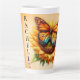 Diese wunderschön gestaltete Latte-Tasse zeigt eine lebendige Abbildung eines Monarchen-Schmetterlings, der auf einer blühenden Sonnenblume steht. Die aufwändigen Details der Flügel des Schmetterlings und der Blütenblätter der Sonnenblumen schaffen ein atemberaubendes visuelle, das sowohl auffällig als auch elegant wirkt. Der Hintergrund hat einen sanften, warmen Verlauf, der die natürliche Schönheit der Kunstwerke ergänzt. Die Tasse kann mit jedem Namen personalisiert werden, was sie zu einem idealen Geschenk für Naturliebhaber und Kaffeefreunde macht.