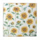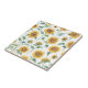 Diese Keramik-Kachel weist ein fröhliches Sonnenblumenmuster auf, das in Gelb und Grün auf weißem Hintergrund gehalten ist. Diese botanische Aquarellkunst ist ideal für Fans der fröhlichen Sonnenblume! Ein Design, das für die meisten Jahreszeiten funktioniert.