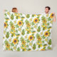 Helle goldene Sonnenblumenbilder bilden ein schönes Collage Muster auf diesem Fleecedecke. Die Sonnenblumenbilder sind umgeben von grünen Blätter und lockigen Stielen und auf einem weißen Hintergrund angeordnet. Das ist eine sonnige, glückliche Ergänzung zu jedem Zimmer! Schauen Sie sich die passenden Produkte in unserem Shop an. *Bilder, die in diesem Design enthalten sind, sind von LeCoq Designs.