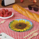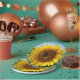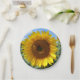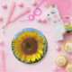 Nah einer Sonnenblume vor dem Hintergrund eines Sonnenblumenfeldes