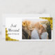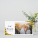 Passen Sie die hübsche SonnenblumenEdge Just Married Foto Card mit Ihrem eigenen Hochzeitsbild und den Namen der Neuvermählten an. Diese elegante, blumengeschmückte Fotokarte mit gelben Sonnenblumen schmückt die Ecken mit weißem Hintergrund.