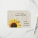 Das Aussehen des gewaschenen Scheunenholzes mit einer hübschen gelben Sonnenblume für eine rustikale oder ländliche Hochzeit. Antwortkarte für unsere Hochzeitseinladungen. Passen Sie Ihren eigenen Text an.