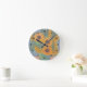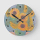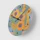 Diese Wanduhr zeigt Sonnenblumen in einer Vase, ein Gemälde von Brendan Loughlin, einem Künstler aus Guilford, Connecticut.