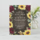 Sonnenblumentheater und Burgunder Rote Rose Hochze Einladung