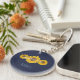 Sonnenblumentrio - personalisierte runde Schlüsselkette für rustikale Gastgeschenk Hochzeiten. Drei Sonnenblumen in einer Reihe angeordnet. Einzigartiges Design in der Erntezeit Stimmung. Von Alma Wad . Es kommt mit Mitternacht blauen Hintergrund. Sie können das jetzt ändern.
