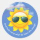 Sonnenbrille auf gelber Sonne am Himmel mit Zitat Runder Aufkleber