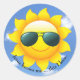 Sonnenbrille auf gelber Sonne am Himmel mit Zitat Runder Aufkleber