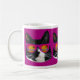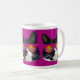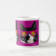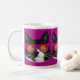Eine niedliche, schwarz-weiße Tuxedo-Katze in epischer Sonnenbrille bei Sonnenuntergang lustige magenta lila fotografische Muster epischen Spaß Haustier Kätzchen Design kühn bezaubernd Katz Liebhaber Spaß episches Design glückliche kitty Gesicht deluxe Zuhause Deluxe Keramik Kaffee Tee oder Kakao-Tasse. Holen Sie sich heute eine epische Cartoon-Designtasse.