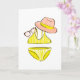 Die Sonne I von Blanckslate genießen. Ein gelber zweiteiliger Badeanzug mit rosa Hut und Sonnenbrille für Accessoires. | 140677GG