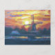 Holland Sonnenuntergang / Sonnenaufgang Windmühle Landschaft schöne Kunst Malerei Postkarte mit niederländischer Windmühle und farbenfrohe orange gelbe Himmel Natur Impressionismus Malerkarte Kunstwerk.