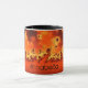 Eine orange Sonne stößt brennende Spiralen in dieser Fraktalgrafik aus. Es gibt Raum für einen Namen in der Mitte der Tasse.