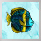 Ein schönes Fischplakat mit einem digitalen Kunstwerk, das einen niedlichen tropischen Engelfisch mit langen Wimpern in schönen Blau- und Gelbtönen darstellt. Eine tolle Ergänzung zu einer Dekoration im Untermeer-Kinderzimmer.