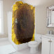 Das ist ein Bild von einer Biene, die auf einer Sonnenblume auf einem Duschvorhang steht.