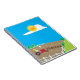 Kinderheft mit farbenfroher Grafik eines Bauern in seinem Traktor, der an einem sonnigen Tag zu seinem Bauernhof tendiert. Personalisiert mit dem Namen Ihres Kindes im frisch gepflügten Feld.