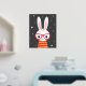 Poster mit weißem Hasen mit roten Gläsern auf einem Hintergrund mit Sternen und Akzenten in Gold oder Silberfolie.