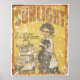 Ein Vintages Werbeplakat für Sonnenlichtseife aus dem Jahr 1873. Es zeigt ein kleines junges Mädchen, das in einer Schüssel Wäsche geht. Das Design hat einen leicht bedrückten Look für ein altersgemäßes Erscheinungsbild.