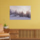 Schneebedeckter Fichtenwald kurz vor dem Sonnenuntergang.