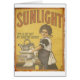 Ein Vintages Werbeplakat für Sonnenlichtseife aus dem Jahr 1873. Es zeigt ein kleines junges Mädchen, das in einer Schüssel Wäsche geht.