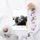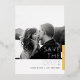 Eine gepflegte und zeitgenössische Foto-Save the Date-Karte mit Folientext und der Vorführung der sonnendurchfluteten Farbtöne in der Briefmarkensammlung.