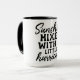 Diese Tasse zeichnet sich durch ein gewagtes und spielerisches Design aus, mit der Phrase "Sunshine gemischt mit einem kleinen Hurrikan", die in einer Kombination aus eleganten, kursiven und kräftigen Blockbriefen geschrieben wurde. Die kontrastierenden Schriftart und die skurrile Botschaft machen es zu einem Geschenk für jemanden mit einer lebendigen und dynamischen Persönlichkeit. Das Design hebt sich vor dem weißen Hintergrund hervor, was das Design auffällig und elegant macht.