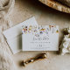 Diese Herbstsonne Wildblume horizontalen Hochzeit speichern das Datum ist perfekt für eine rustikale Hochzeit. Die Einrichtung besteht aus mehreren lila Aquarellen, violetten, gelben Blumen, bordeauxfarbenen Knospen und Olivgrün, die schön in Bouquets gruppiert sind.