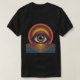 Dieses T - Shirt-Design präsentiert eine faszinierende, surreale Illustration mit einem Single-Auge, das aus einem stilisierten Sonnenuntergang hervorgeht. Das Auge, detailliert mit realistischen Texturen und lebhaften Farben, blickt nach außen mit einer intensiven grünen Iris und dunklem Schüler. Um das Auge herum gibt es eine Reihe von konzentrischen Ringen in warmen Farbtönen, die an die Sonnenstrahlen erinnern, gelb, orange und lila. Unterhalb des Auges bilden blaue und lila Wellen eine ruhige Meereslandschaft, die den Eindruck vermittelt, dass das Auge wie die Sonne über dem Ozean aufgeht. Die Kombination aus aufwändiger Linienarbeit und intensiven Farbgradienten verleiht diesem Design eine einzigartige, traumhafte Qualität, die sich auf Bekleidung hervorragend auszeichnet.