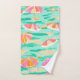 Die sonnigen Farbtöne Rosa, Orange, aquamarin und Aqua sorgen für eine warme Sommerkulisse mit Sonnenschirmen.