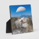 Sonnenschirm und Liegestühle am Strand Fotoplatte