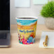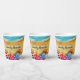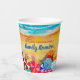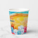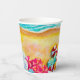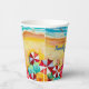 Wellen an einem Sandstrand, ein Surfer und Sonnenanbeter unter bunten Schirmen, diese Papiertassen sind eine unterhaltsame Ergänzung zu Ihrem Wiedersehen, Urlaub, Sommerdekoration oder zu jedem Anlass. PASSENDE Artikel in unserem Geschäft.