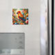 Sun Conure Parrot Magnet mit einem Ölgemälde eines Sun Conure Parrot umgeben von bunten Blume. Dieses lebendige und detaillierte Design bringt künstlerische Eleganz und natürliche Schönheit in Ihre Küche.