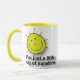 Eine herrliche Tasse mit einer glücklichen Sonne und die Wörter bin ich gerade ein kleiner Strahl des Sonnenscheins. unter ihm. Vervollkommnen Sie für diese mürrische Person morgens.