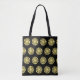 Radiant Sun Muster auf schwarzem Hintergrund Tote Tasche.