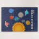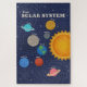 Eine farbenprächtige Abbildung des Sonnensystems mit 8 Planeten: Merkur, Erde, Venus, Neptun, Saturn, Uranus, Mars, Jupiter und der Sonne vor einem sternblauen Hintergrund. Dieses moderne Design ist sowohl stilvoll als auch lehrreich, großartig wie Dekor und Zuhause-Schulungen.
