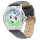 Kinder Edelstahluhr mit schwarzem Lederarmband