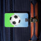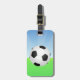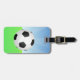 Schwarz-Weiß-Hexagon-Fußballball in einem grünen Grasfeld an einem sonnigen Tag mit blauem Himmel und Lichtstrahlen im Hintergrund. Was für ein schönes Wetter, um im Freien das große futbol Spiel oder Fußball Sommerlager zu spielen.