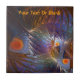 Ein mehrfarbiges Fraktal, das an eine Wand aus Tempeln erinnert, die mit polychromen Schnitzereien verziert ist. Die Hauptfarben sind Blau und Orange. Passen Sie Ihren eigenen Text an.
