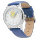 Kinderuhr aus Edelstahl mit blauem Lederarmband