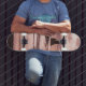 Sonnenuntergang am schwarzen Sandstrand Reynisfjar Skateboard