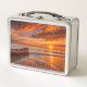 Mittagsschachtel mit einem Bild eines Sonnenuntergangs am Strand mit Ruderboot.