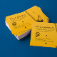Eine minimale Visitenkarte mit gelb-orangefarbenem Design und Kranichen im Hintergrund. Die Farben bringen Ideen von Sonnenuntergang oder Sonnenaufgang, während die gleichen Farben das Farbcodierungsschema einer Bauzone nachahmen.