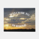 Laden Sie sich mit diesem einzigartigen Türmchen in Ihre Zuhause ein, mit meinem Originalfoto "Sunset Through The Clouds". Das Foto verfügt über eine Silhouette von Baumgipfeln in der Ferne. Auf der Oberseite des Gebäudes befinden sich weiche, graue Wolken, mit Öffnungen, die den Sonnenuntergang durch den Gipfel gelassen. Unter den grauen Wolken befindet sich ein goldgelber Himmel. Der fette, weiße Gewölbetext lautet "WILLKOMMEN AUF UNSERE ZUHAUSE". Der Text in der Mitte kann mit Ihrem Namen persönlich sein. (Beispiel: Die Smith; Herr & Mrs. Smith; John & Mary Smith)