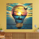 Tauchen Sie ein in die Ruhe der Natur mit unserem bezaubernden Leinenprint "Sunset Serenity". Dieses atemberaubende Kunstwerk besticht durch eine lebhafte Sonnenuntergangsszene, die auf der Leinwand einer Glühbirne zart gemalt wurde. Vor dem Hintergrund des goldgelben Himmels und der weich gezogenen Wolken steht ein einziger karger Baum hoch, während Vögel in Flug und spitzen Ästen die Szene zum Leben erwecken. Im Mittelpunkt der Komposition steht eine Silhouette eines Menschen, die friedlich ein Boot anlegt und von einem ruhigen Vogel begleitet wird. Die texturierte Basis der Glühbirne verleiht dem Kunstwerk Tiefe und erhöht seine visuelle Attraktivität. Bringen Sie die Schönheit der Natur in Ihren Raum und erwecken Sie mit diesem faszinierenden Leinwand ein Gefühl von Ruhe und Gelassenheit.
