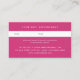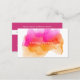 Chic Aquarellterminkarten für Ihren Salon, Wellness-Center oder Beauty-Service sind mit Ihrem Namen oder Firmennamen versehen, der auf einer blühenden Tintenklatsche in leuchtenden, farbenfrohen Sonnenuntergangstönen fuchsienrosa und goldene Stangen platziert ist. Fügen Sie Ihre Stornierungsrichtlinien, Ihre eigene Überschrift und Kontaktinformationen auf der Rückseite in Weiß auf Magenta hinzu. Enthält Platz zum Schreiben des Termins und der Uhrzeit Ihres Kunden.