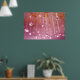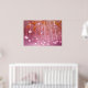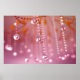 Ein 3D-Makrofoto eines Kristallkronleuchters. Unzählige Streifen glänzender Glasperlen erhellen das Licht und schaffen einen schönen Rahmen im Hintergrund. Die glatten Glastropfen spiegeln sich deutlich in den scharf fokussierten Kristallkugeln im Vordergrund wider. Die goldenen Zweige des Kronleuchters und die sanfte rosa Atmosphäre und Lichter verleihen dem Stück einen Sonnenuntergang. Erstellt in Vue.