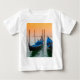 Friedliche Lage neben dem Doge's Palace in Venedig, Italien, mit vier Gondeln, die alle zu einem wunderschönen mistigen Sonnenuntergang zeigen.
