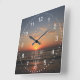 Sonnenuntergang mit Leben-Zitat Quadratische Wanduhr