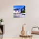 Sonnenuntergang mit Palmen und felsigem Strand Poster